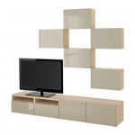БЕСТО Шкаф для ТВ, комбинация - под беленый дуб/Сельсвикен глянцевый/бежевый, направляющие ящика,нажимные