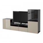 БЕСТО Шкаф для ТВ, комбин/стеклян дверцы - черно-коричневый/Сельсвикен глянцевый/бежевый прозрачное стекло, направляющие ящика, плавно закр