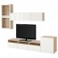 БЕСТО Шкаф для ТВ, комбин/стеклян дверцы - под беленый дуб/Сельсвикен глянцевый/белый прозрачное стекло, направляющие ящика, плавно закр