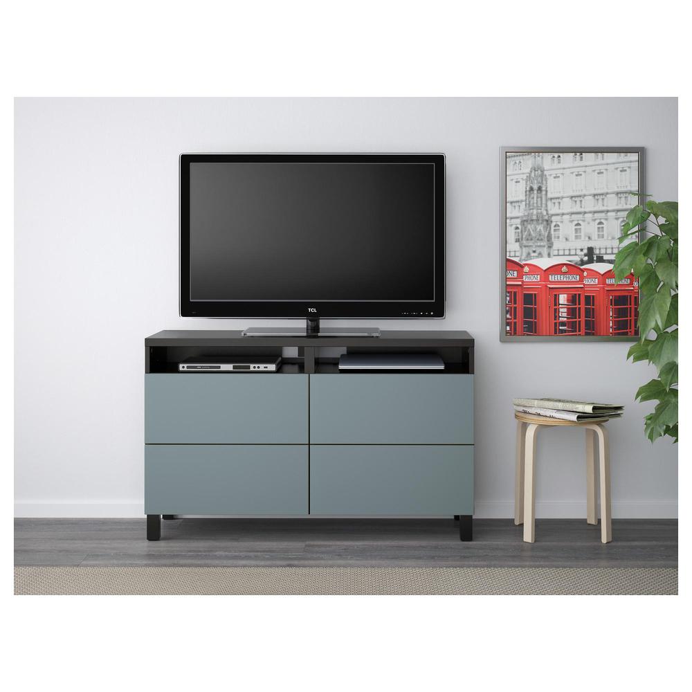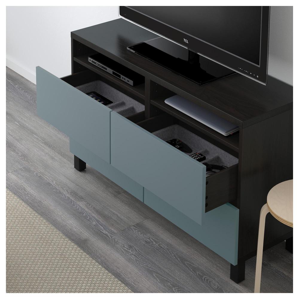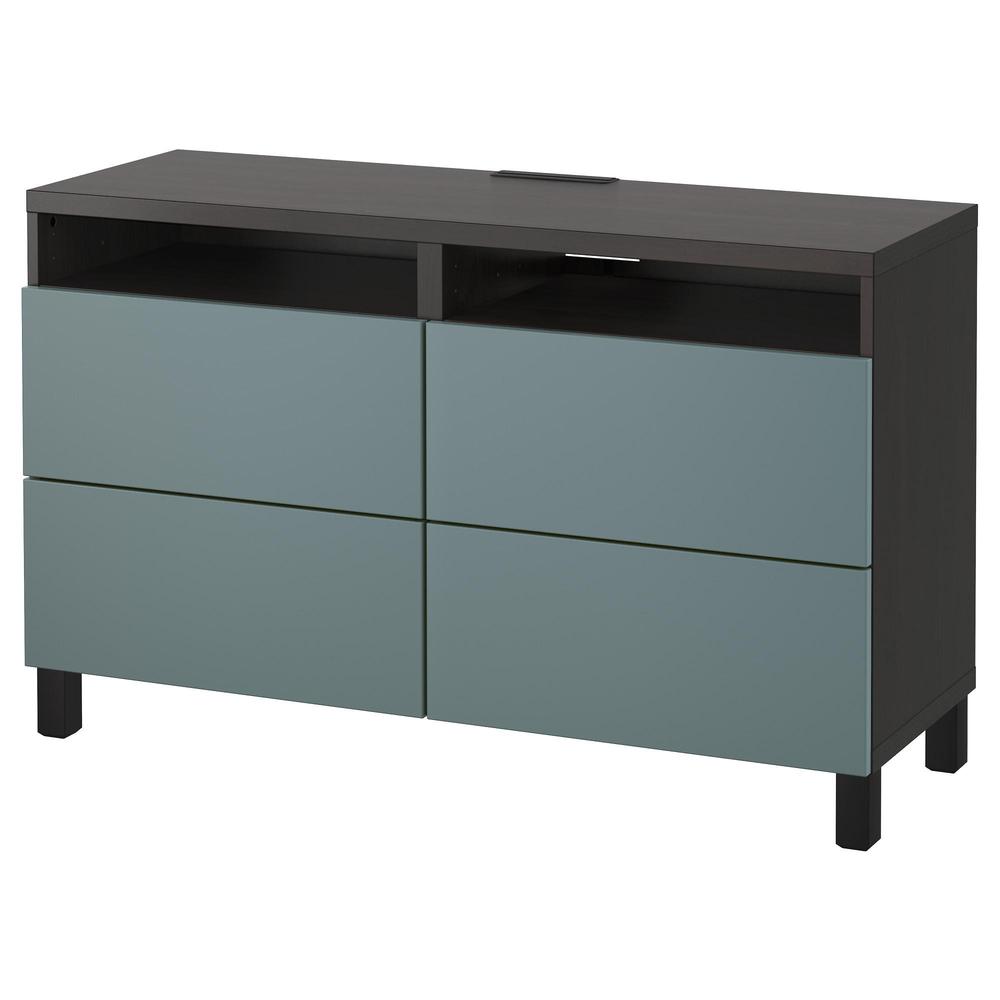 БЕСТО Тумба д/ТВ с ящиками - черно-коричневый/Вальвикен серо-бирюзовый, направляющие ящика, плавно закр