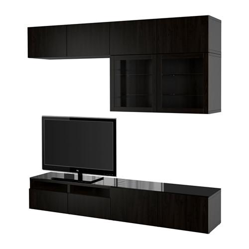 БЕСТО Шкаф для ТВ, комбин/стеклян дверцы - Лаппвикен/Синдвик черно-коричневый прозрачное стекло, направляющие ящика, плавно закр