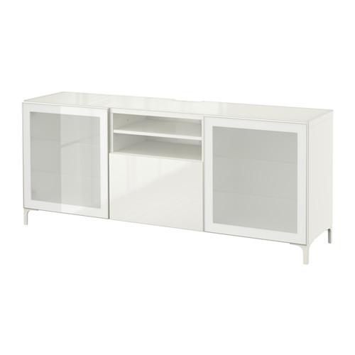 БЕСТО Тумба под ТВ - белый/Сельсвикен глянцевый/белый матовое стекло, направляющие ящика, плавно закр