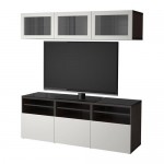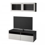 БЕСТО Шкаф для ТВ, комбин/стеклян дверцы - черно-коричневый Лаппвикен/светло-серый прозрачное стекло, направляющие ящика,нажимные