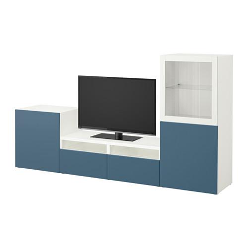 БЕСТО Шкаф для ТВ, комбин/стеклян дверцы - белый Вальвикен/темно-синий прозрачное стекло, направляющие ящика, плавно закр