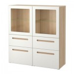 БЕСТО Комбинация д/хранения+стекл дверц - под беленый дуб/Инвикен черно-коричневый прозрачное стекло