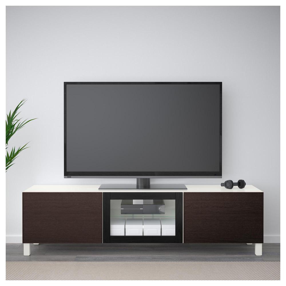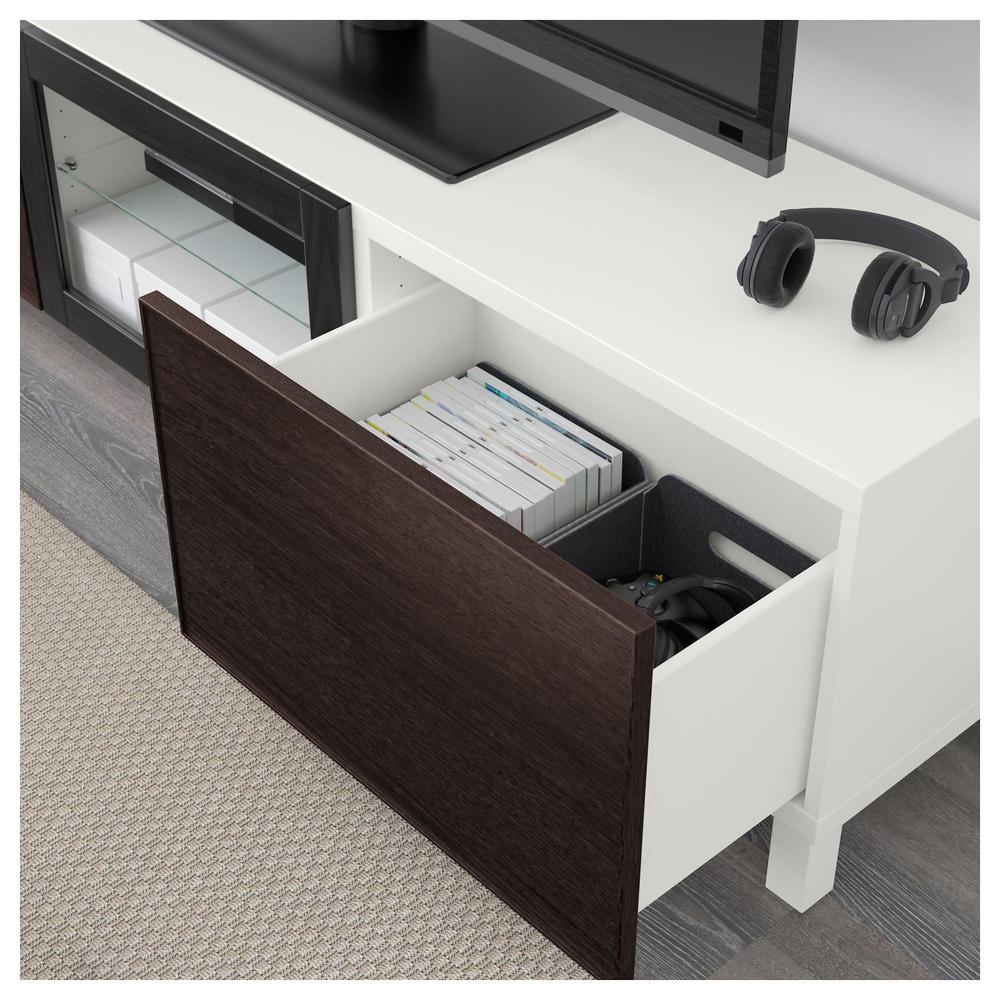 БЕСТО Тумба под ТВ с ящиками и дверцей - белый/Инвикен черно-коричневый прозрачное стекло, направляющие ящика, плавно закр 0.0/5 оценка (0 голосов)