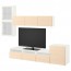 БЕСТО Шкаф для ТВ, комбин/стеклян дверцы - белый Синдвик/Инвикен ясеневый шпон, направляющие ящика,нажимные