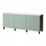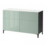 БЕСТО Комб для хран с дверц/ящ - черно-коричневый/Сельсвикен глянцевый/серо-зеленый светлый, направляющие ящика, плавно закр
