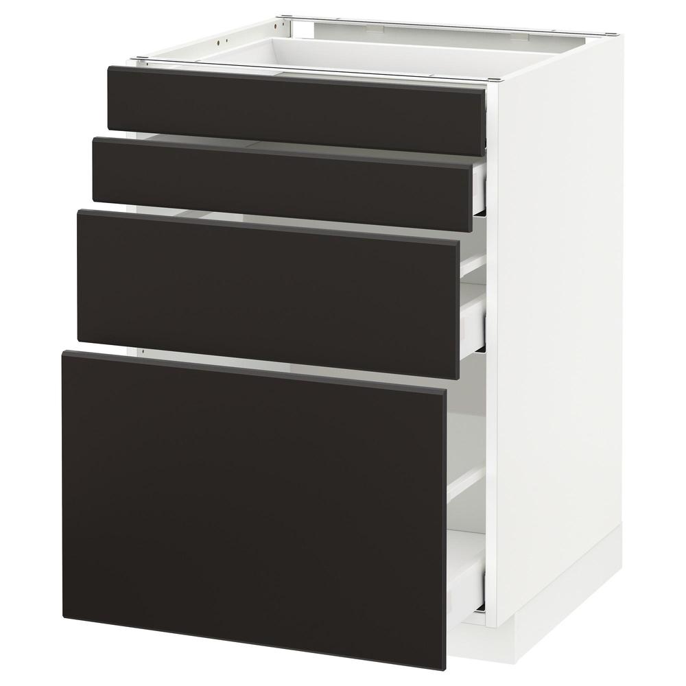 МЕТОД / МАКСИМЕРА Напольн шкаф 4 фронт панели/4 ящика - белый, Кунгсбакка антрацит, 60x60 см 0.0/5 оценка (0 голосов)