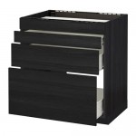 МЕТОД / ФОРВАРА Нап шкаф д/духовки/4фасада/3ящика - под дерево черный, Кунгсбакка антрацит, 60x60 см