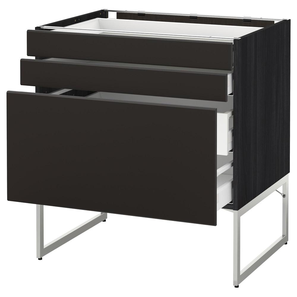МЕТОД / МАКСИМЕРА Напольн шкаф 3фронт пнл/2низ/2ср ящ - под дерево черный, Кунгсбакка антрацит, 80x60x60 см