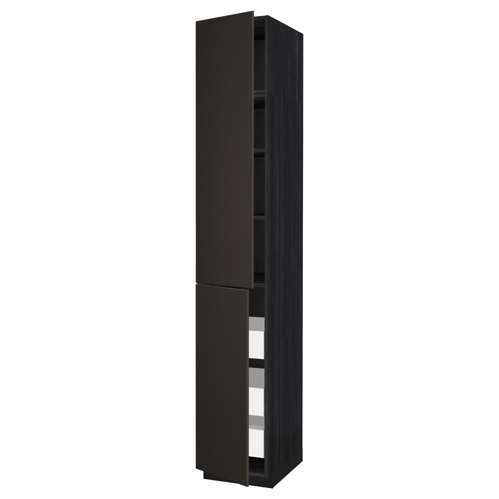 МЕТОД / МАКСИМЕРА Высокий шкаф+полки/3 ящика/2 дверцы - под дерево черный, Кунгсбакка антрацит, 40x60x240 см