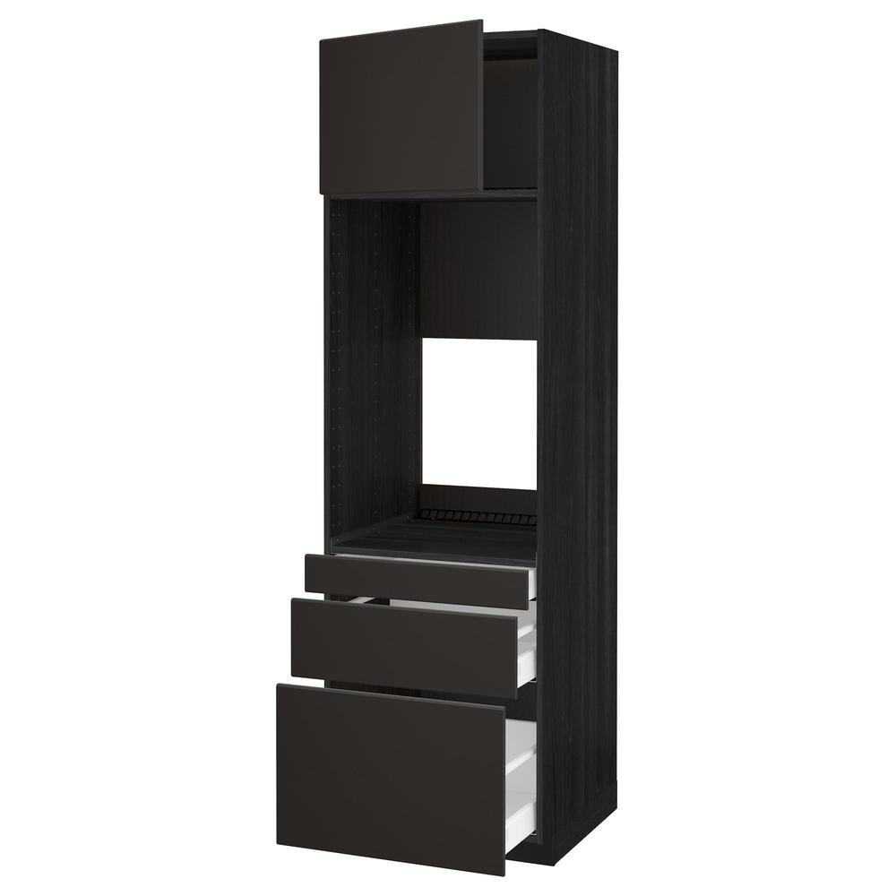 МЕТОД / МАКСИМЕРА Выс шкаф д/двойн духовки/3ящ/дверца - под дерево черный, Кунгсбакка антрацит, 60x60x200 см