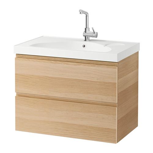 ГОДМОРГОН / ЭДЕБОВИКЕН Шкаф для раковины с 2 ящ - под беленый дуб