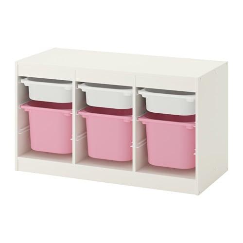 ТРУФАСТ Комбинация д/хранения+контейнерами - белый/розовый
