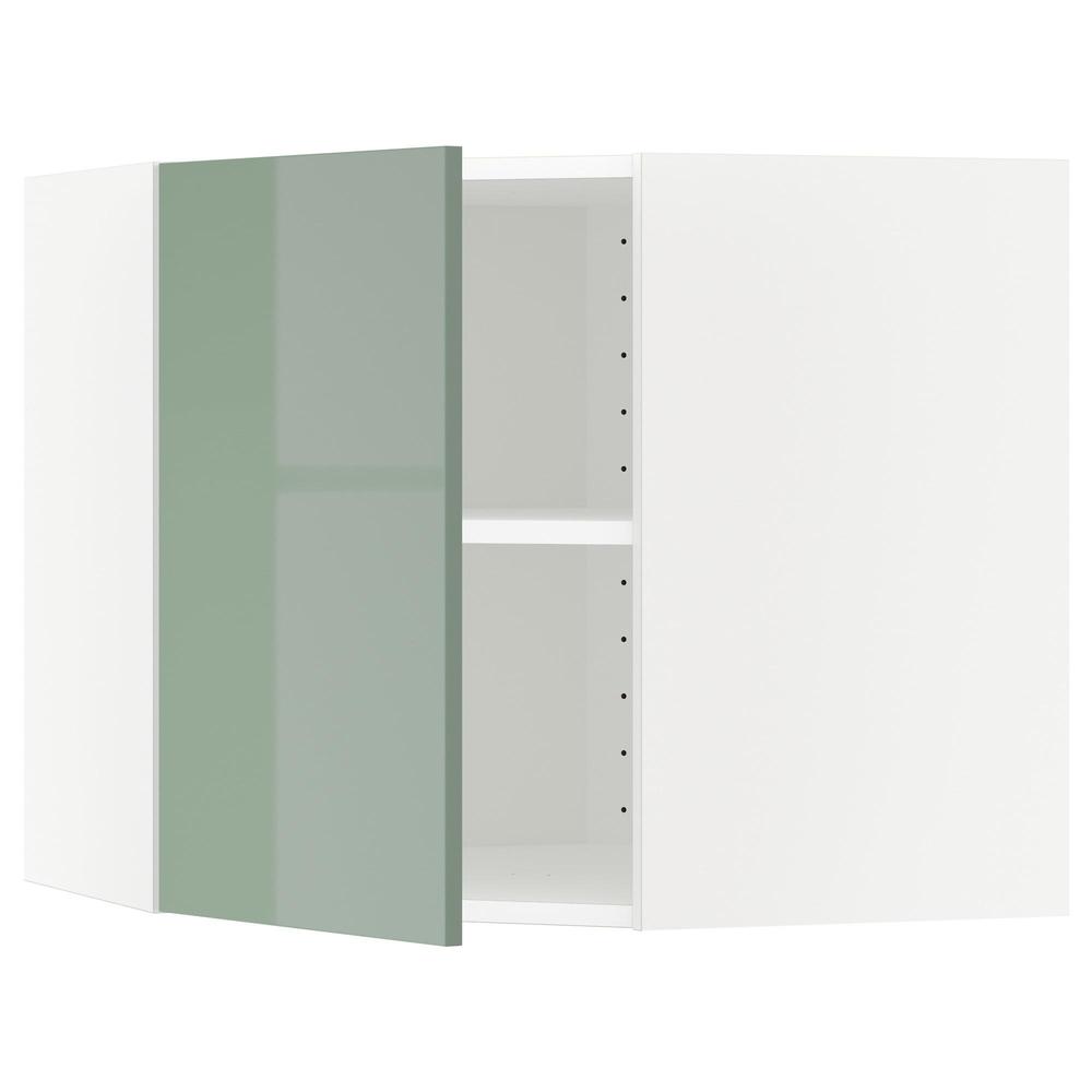 МЕТОД Угловой навесной шкаф с полками - белый, Калларп глянцевый светло-зеленый, 68x60 см