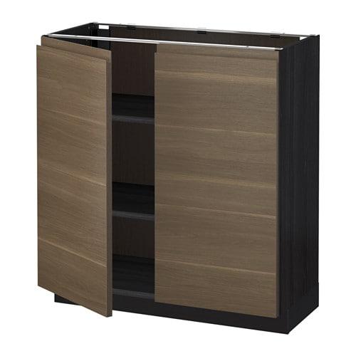 МЕТОД Напол шкаф с полками/2двери - под дерево черный, Воксторп под грецкий орех, 80x37 см