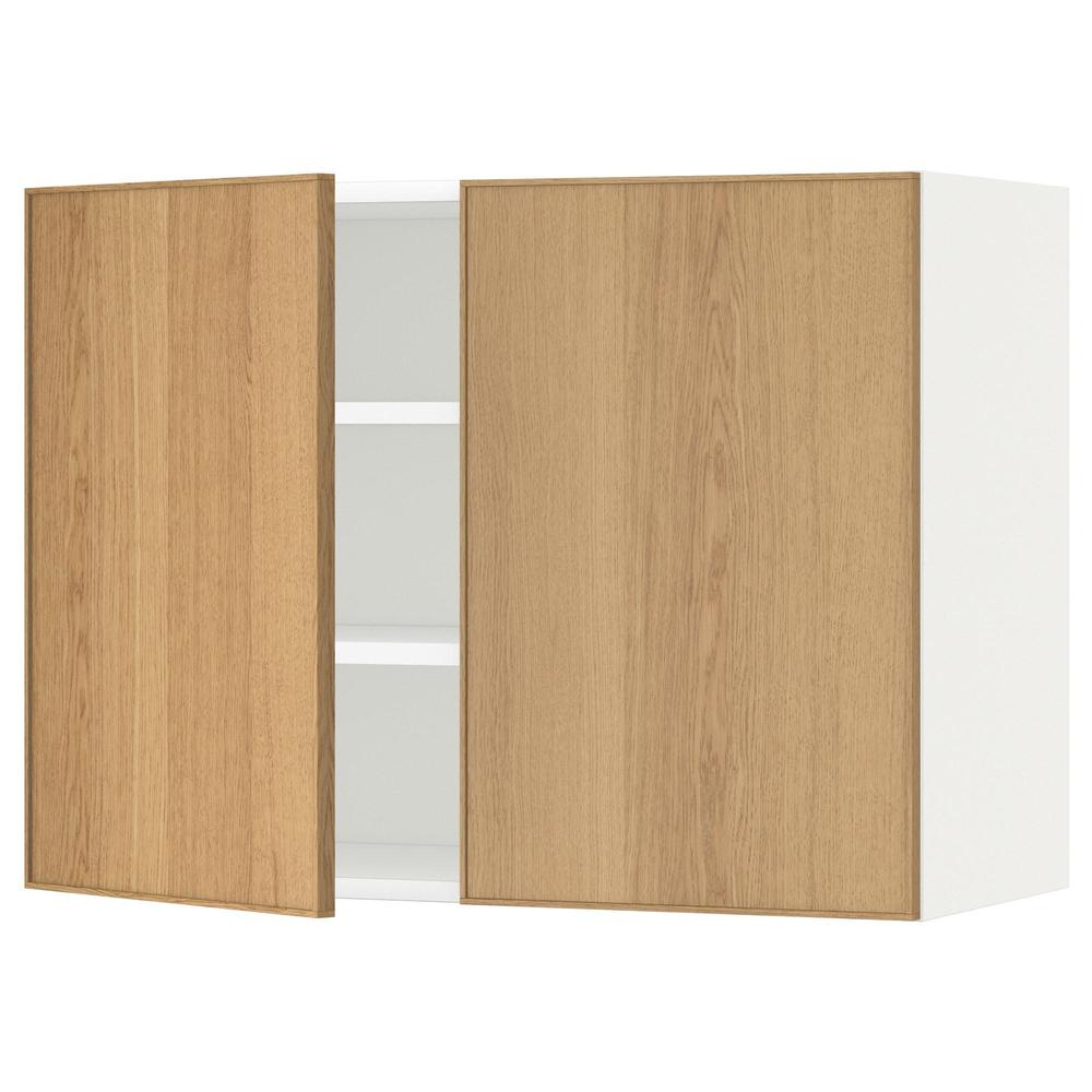 МЕТОД Навесной шкаф с полками/2дверцы - белый, Экестад дуб, 80x60 см