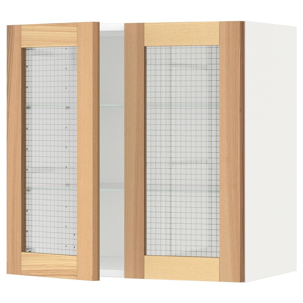 МЕТОД Навесной шкаф с полками/2 стекл дв - белый, Торхэмн естественный ясень, 60x60 см