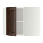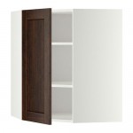 МЕТОД Угловой навесной шкаф с полками - белый, Эдсерум под дерево коричневый, 68x100 см