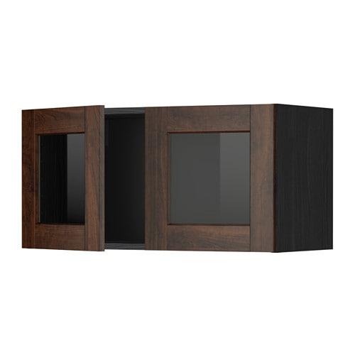 МЕТОД Навесной шкаф с 2 стеклянн дверями - под дерево черный, Эдсерум под дерево коричневый