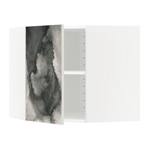 МЕТОД Угловой навесной шкаф с полками - белый, Кальвиа с печатным рисунком, 68x60 см
