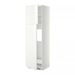 МЕТОД Высокий шкаф д/холодильника/2дверцы - белый, Рингульт глянцевый светло-серый, 60x60x200 см