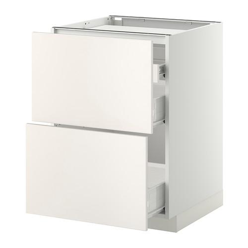 МЕТОД / ФОРВАРА Напольн шкаф/2 фронт пнл/3 ящика - белый, Веддинге белый, 60x60 см
