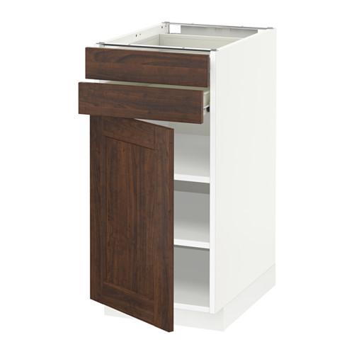 МЕТОД / ФОРВАРА Напольный шкаф с дверцей/2 ящиками - белый, Эдсерум под дерево коричневый, 40x60 см