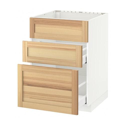 МЕТОД / МАКСИМЕРА Напольн шк п-мойку+3фрнт пнл/2ящ - белый, Торхэмн естественный ясень, 60x60 см