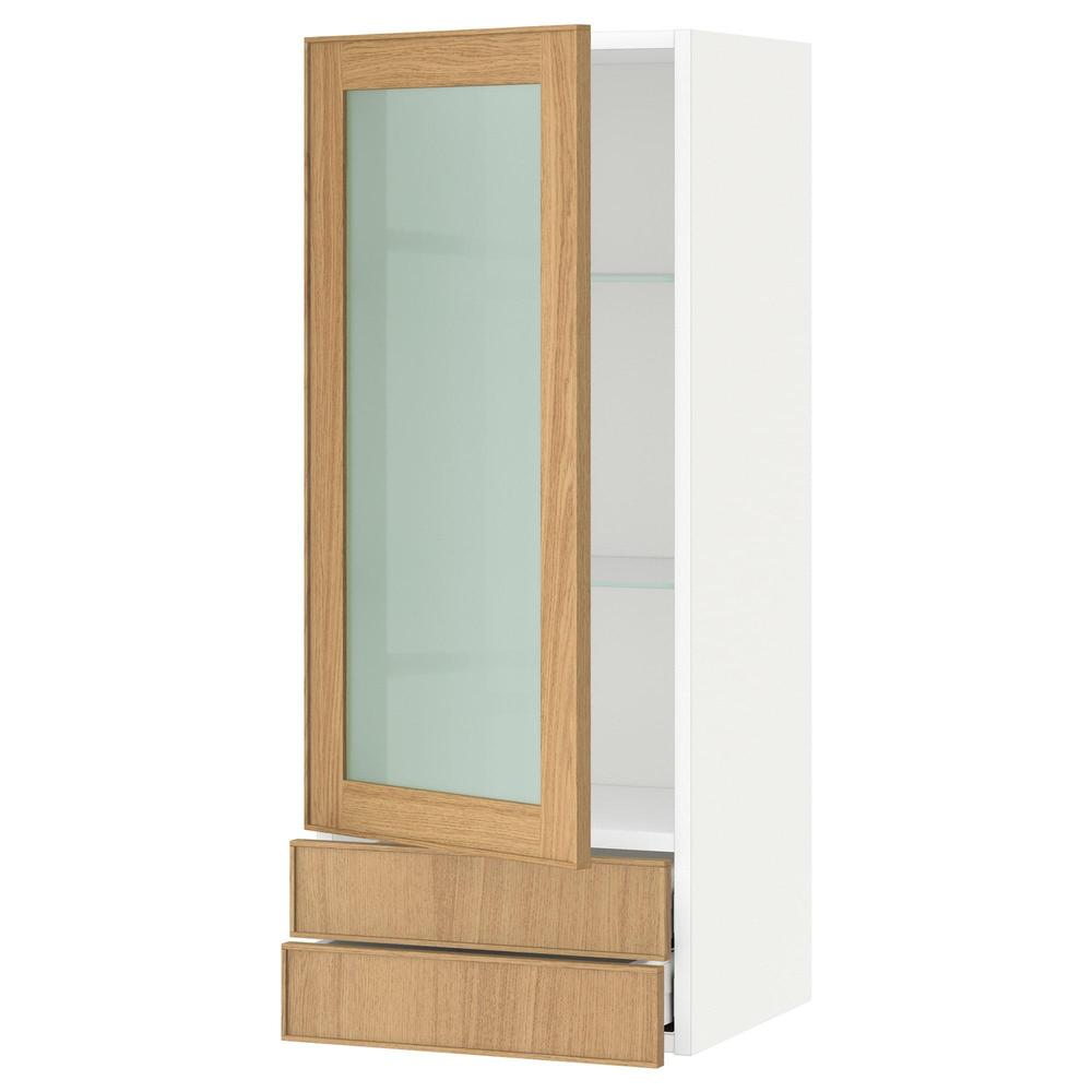 МЕТОД / МАКСИМЕРА Навесной шкаф/стекл дверца/2 ящика - белый, Экестад дуб, 40x100 см