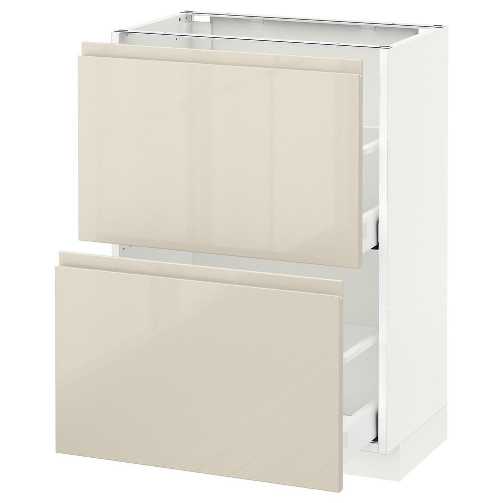 МЕТОД / МАКСИМЕРА Напольный шкаф с 2 ящиками - белый, Воксторп глянцевый светло-бежевый, 60x37 см