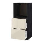 МЕТОД / МАКСИМЕРА Высокий шкаф д/СВЧ/дверца/3ящика - под дерево черный, Воксторп глянцевый светло-бежевый, 60x60x220 см