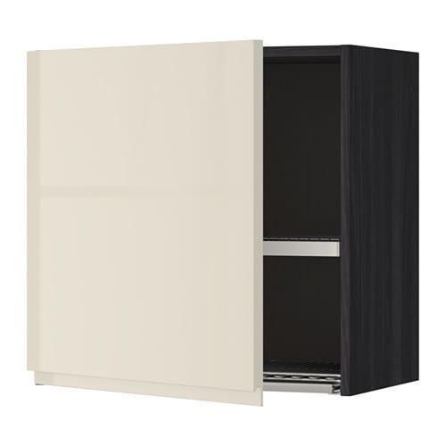 МЕТОД Шкаф навесной с сушкой - под дерево черный, Воксторп глянцевый светло-бежевый, 60x60 см