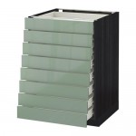 МЕТОД / ФОРВАРА Наполн шкаф 8 фронт/8 низк ящиков - под дерево черный, Калларп глянцевый светло-зеленый, 40x60 см