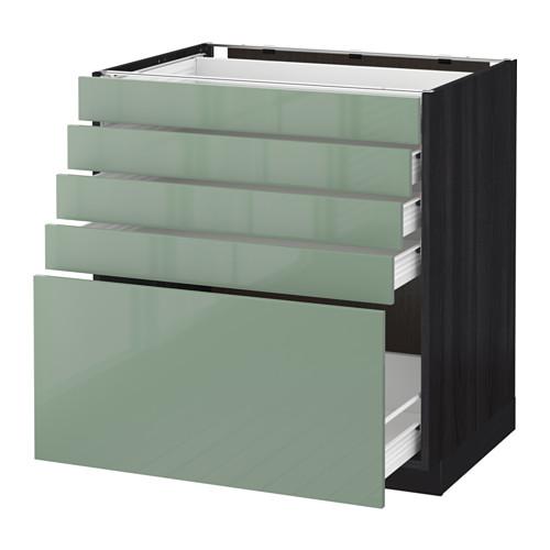МЕТОД / ФОРВАРА Напольный шкаф с 5 ящиками - под дерево черный, Калларп глянцевый светло-зеленый, 80x60 см
