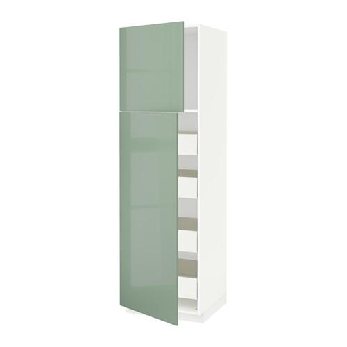 МЕТОД / ФОРВАРА Высокий шкаф/2дверцы/4ящика - белый, Калларп глянцевый светло-зеленый, 60x60x200 см
