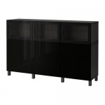 БЕСТО Комбинация для хранения с дверцами - черно-коричневый/Глассвик черный/прозрачное стекло