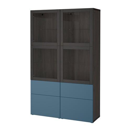 БЕСТО Комбинация д/хранения+стекл дверц - черно-коричневый Вальвикен/темно-синий прозрачное стекло, направляющие ящика, плавно закр