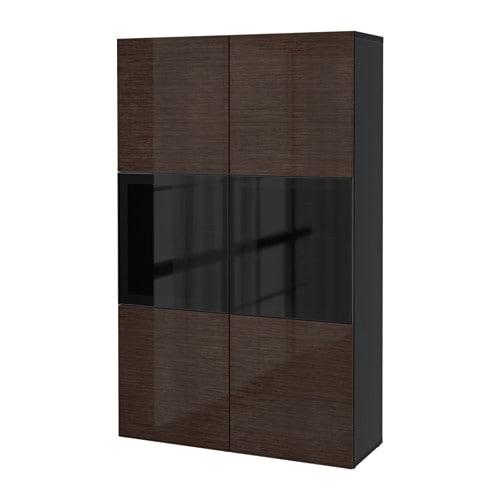 БЕСТО Комбинация д/хранения+стекл дверц - черно-коричневый/Сельсвикен глянцевый/коричневый дымчат стекло
