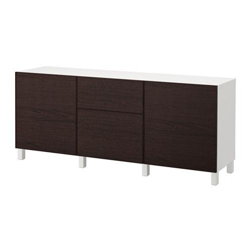 БЕСТО Комбинация для хранения с ящиками - белый/Инвикен черно-коричневый, направляющие ящика, плавно закр