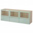 БЕСТО Тумба под ТВ, с дверцами и ящиками - под беленый дуб Сельсвикен/глянцевый/серо-зеленый светлый прозрачное стекло, направляющие ящика,нажимные