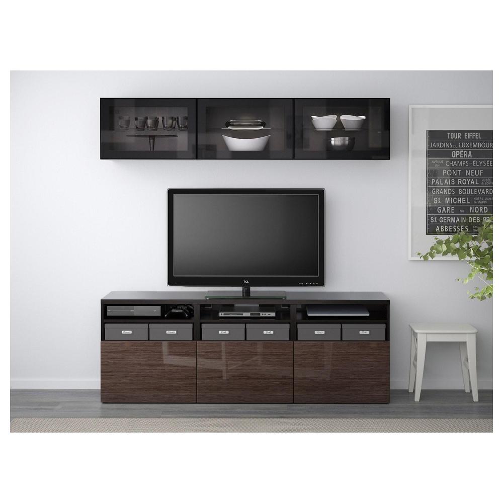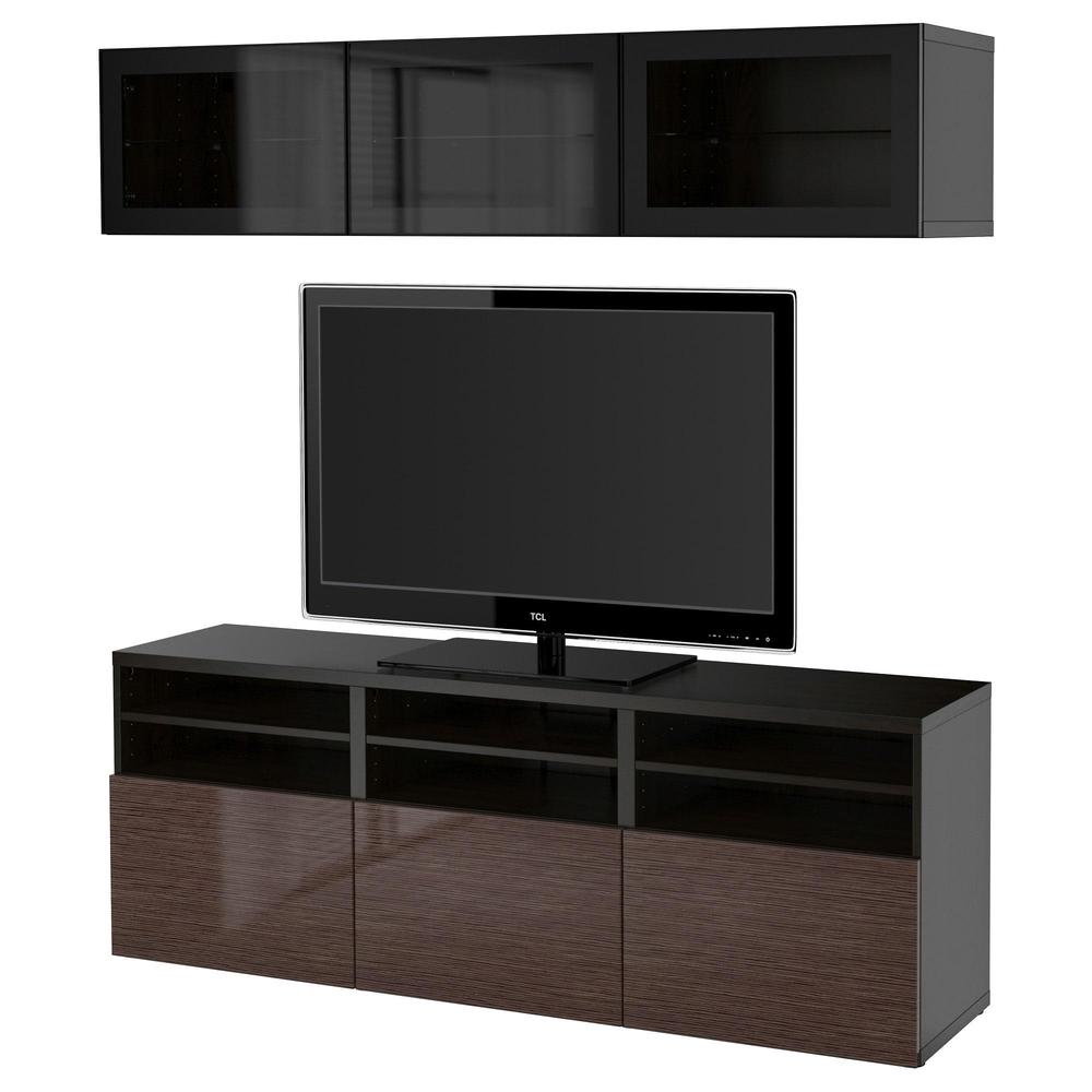 БЕСТО Шкаф для ТВ, комбин/стеклян дверцы - черно-коричневый/Сельсвикен глянцевый/коричневый прозрач стекло, направляющие ящика,нажимные 0.0/5 оценка (0 голосов)