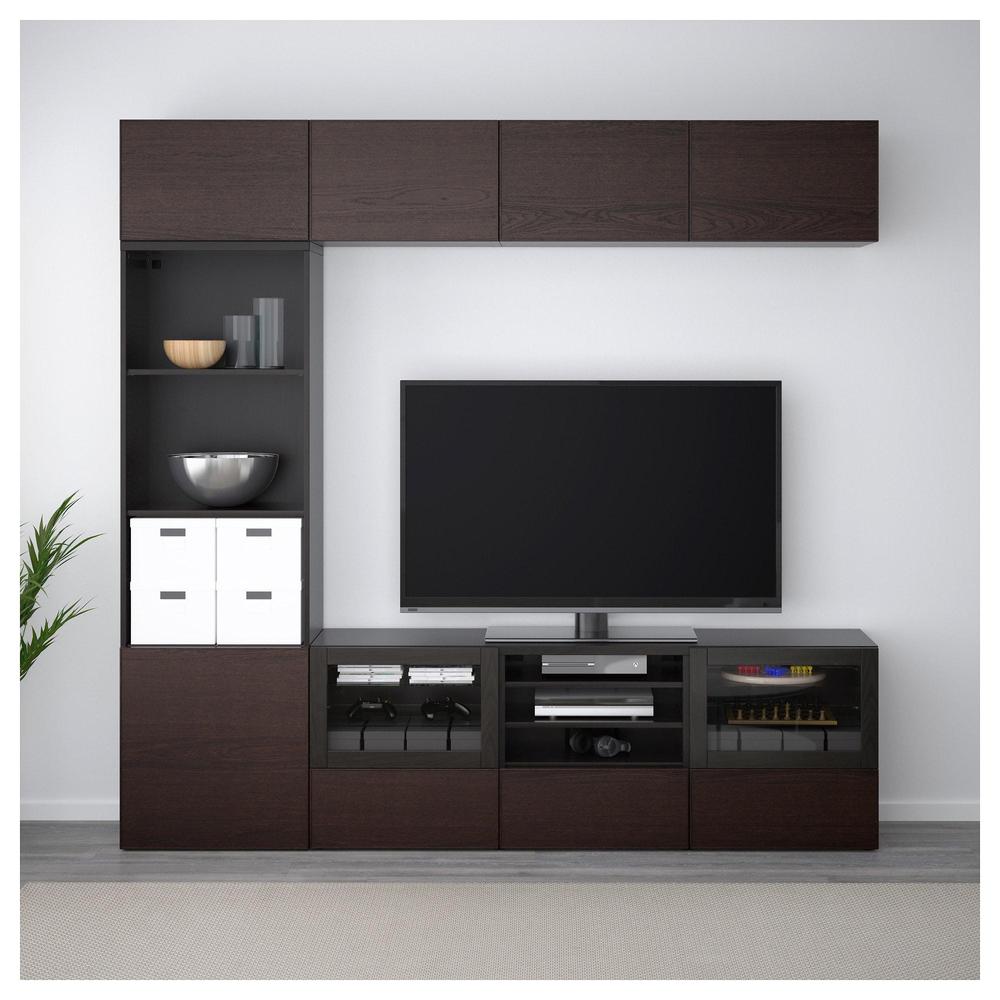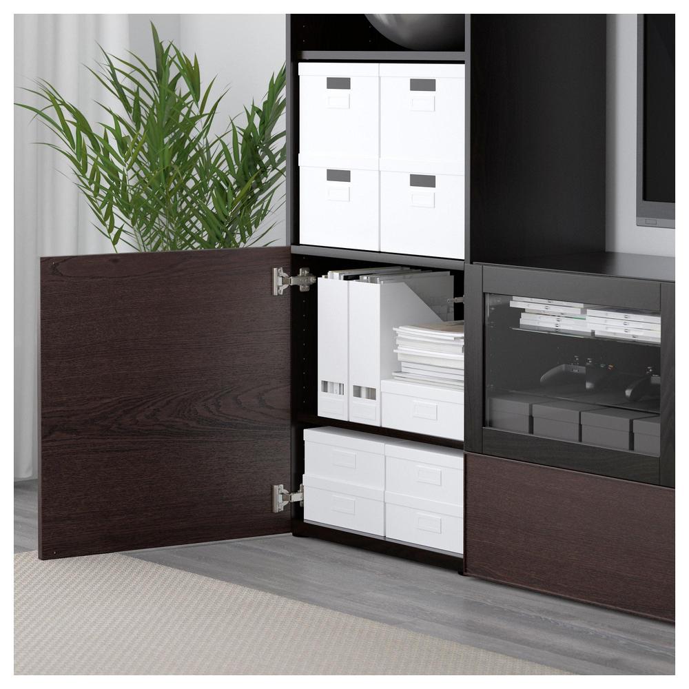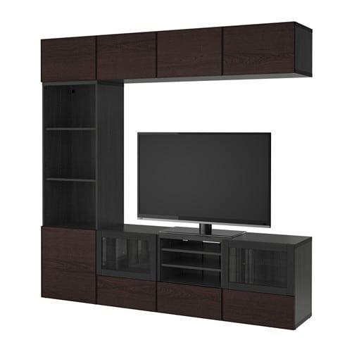 БЕСТО Шкаф для ТВ, комбин/стеклян дверцы - черно-коричневый/Инвикен черно-коричневый прозрачное стекло, направляющие ящика,нажимные
