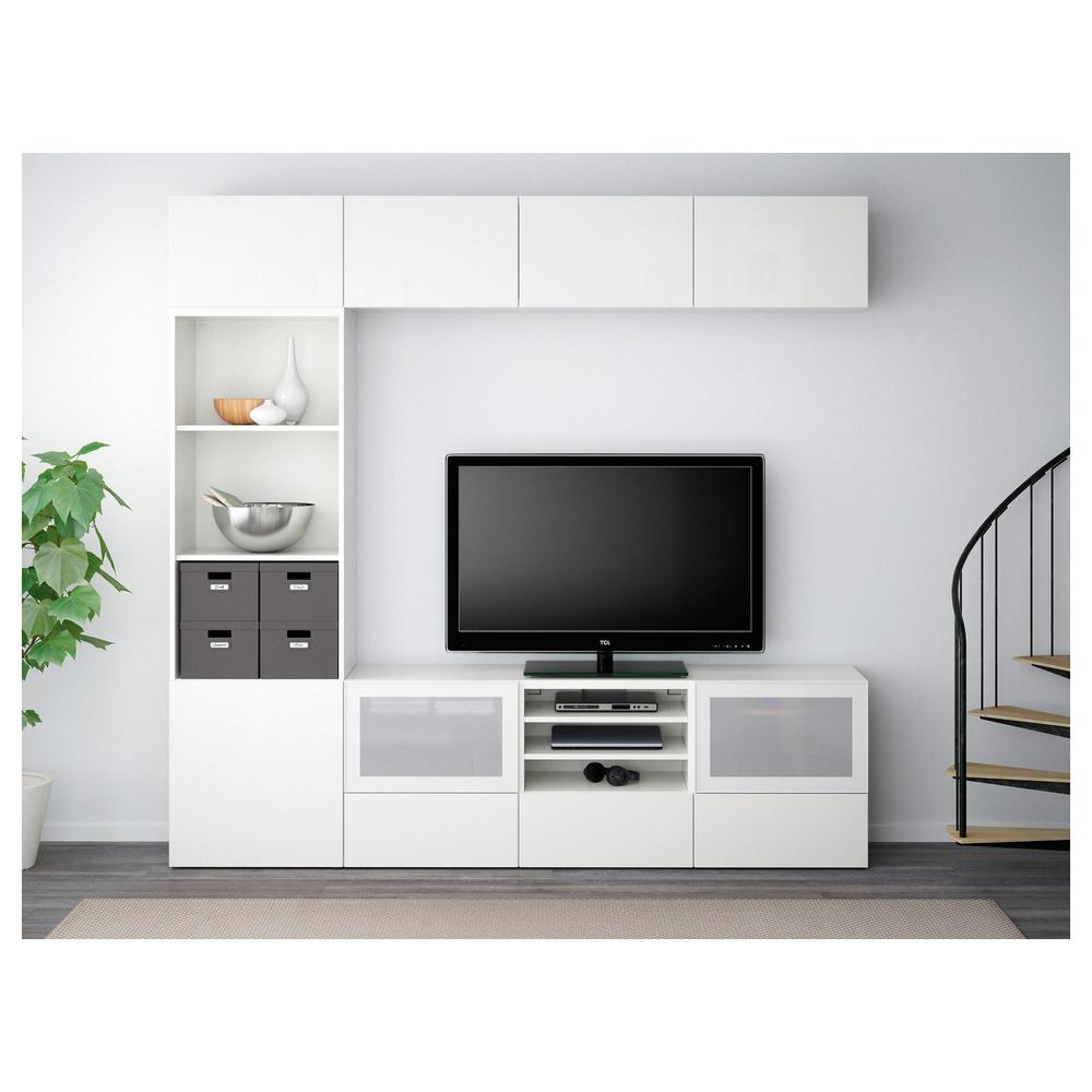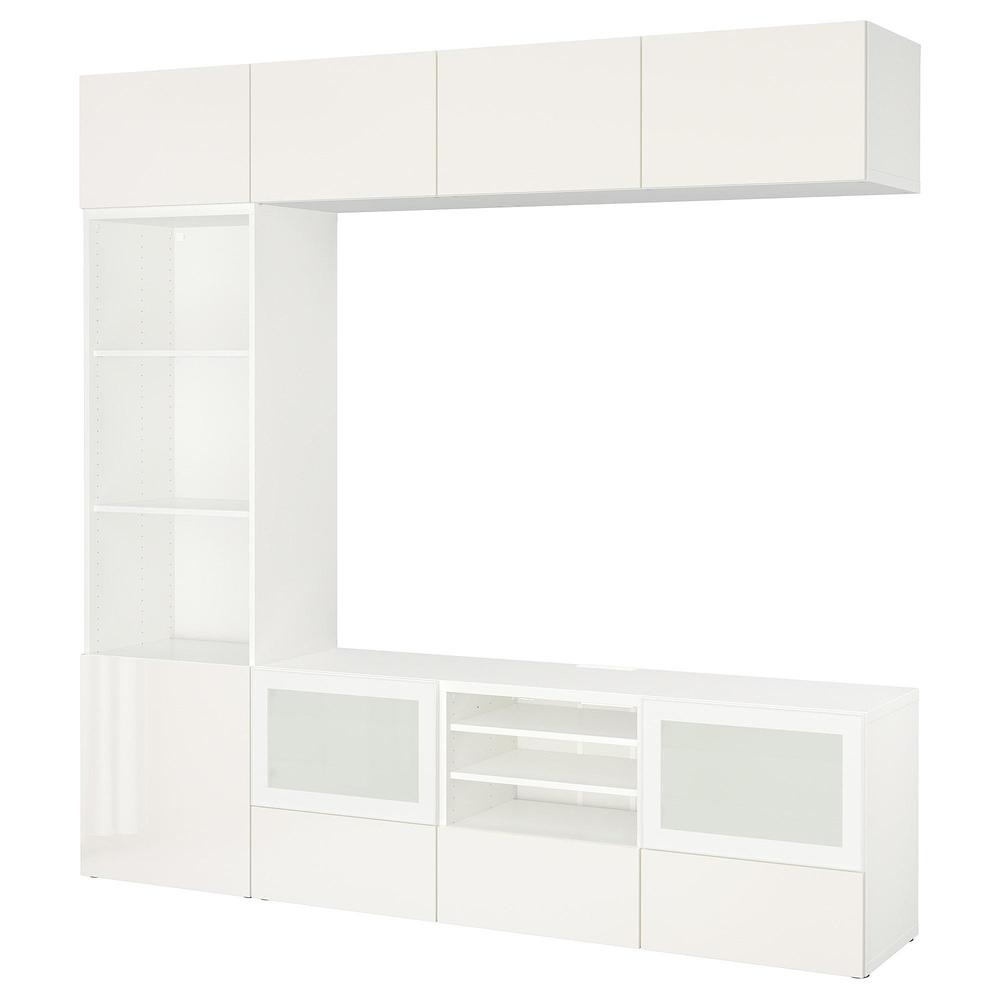 БЕСТО Шкаф для ТВ, комбин/стеклян дверцы - белый/Сельсвикен глянцевый/белый матовое стекло, направляющие ящика, плавно закр 0.0/5 оценка (0 голосов)