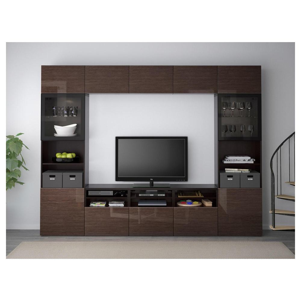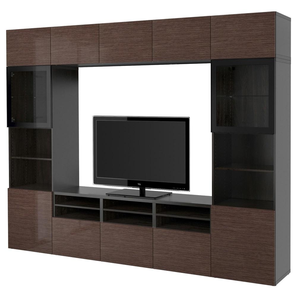 БЕСТО Шкаф для ТВ, комбин/стеклян дверцы - черно-коричневый/Сельсвикен глянцевый/коричневый прозрач стекло, направляющие ящика,нажимные