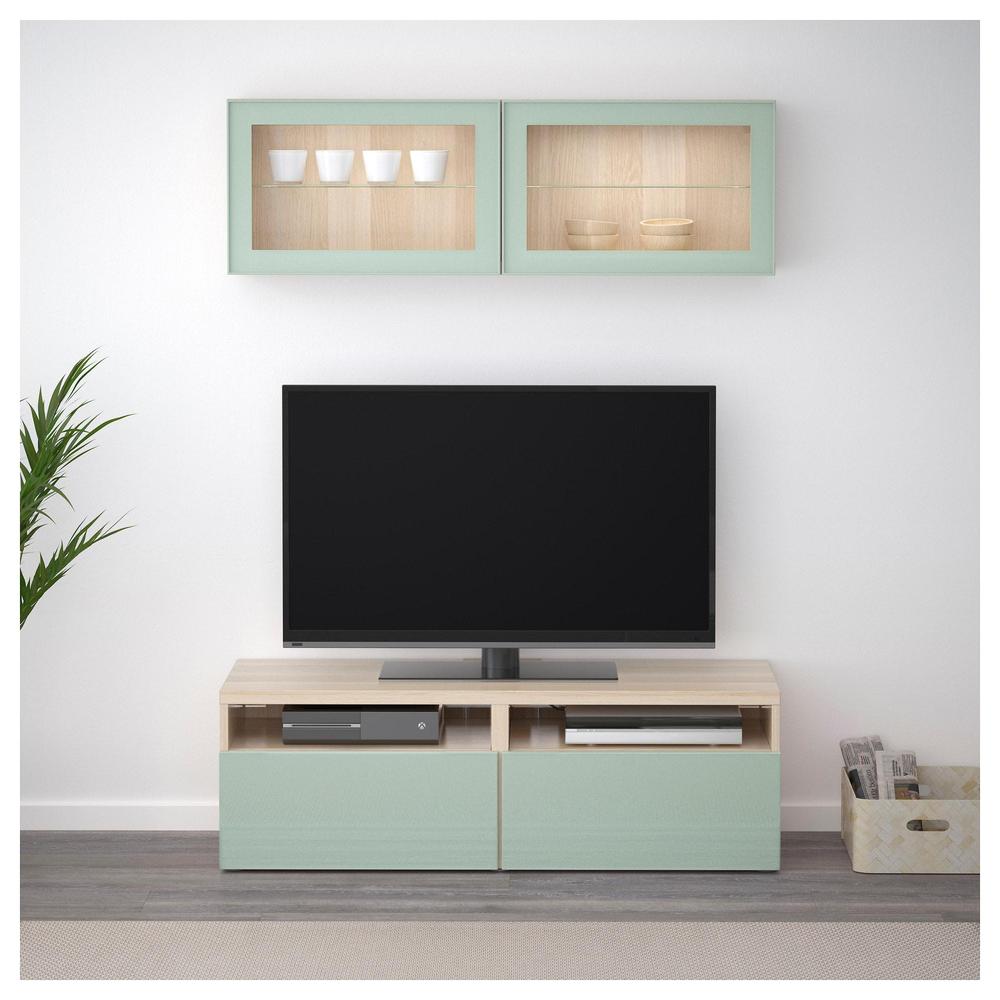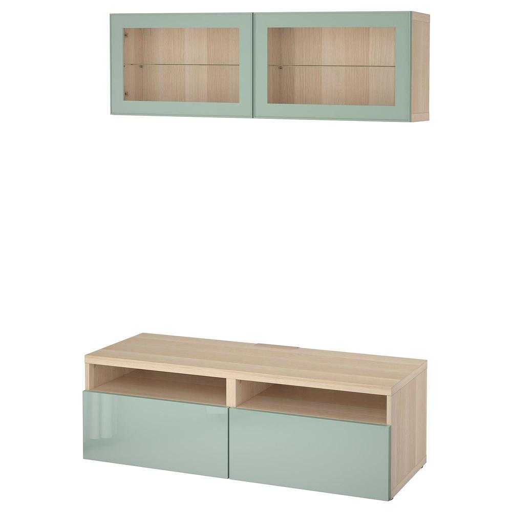БЕСТО Шкаф для ТВ, комбин/стеклян дверцы - под беленый дуб Сельсвикен/глянцевый/серо-зеленый светлый прозрачное стекло, направляющие ящика, плавно закр 0.0/5 оценка (0 голосов)