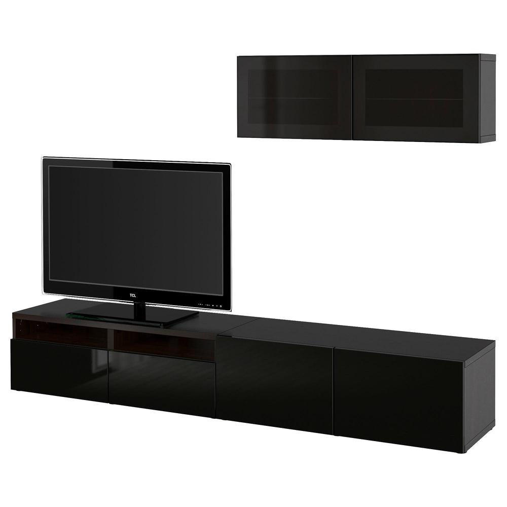БЕСТО Шкаф для ТВ, комбин/стеклян дверцы - черно-коричневый/Сельсвикен глянцевый/черный дымчатое стекло, направляющие ящика,нажимные 0.0/5 оценка (0 голосов)