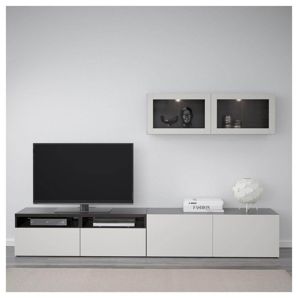 БЕСТО Шкаф для ТВ, комбин/стеклян дверцы - черно-коричневый/Лаппвикен светло-серый прозрачное стекло, направляющие ящика,нажимные