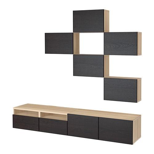 БЕСТО Шкаф для ТВ, комбинация - под беленый дуб/Инвикен черно-коричневый, направляющие ящика, плавно закр